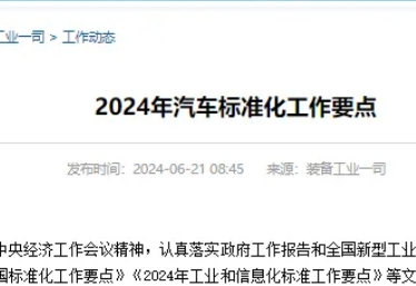 6月21日,工信部制定发布《2024年汽车标准化工作要点》(以下简称《工作要点》),从五个方面提出19个工作要点。其中,新能源汽车和相关产业链是此次《工作要点》的核心。《工作要点》提出,推进重点标准体系建设。做好《国家车···